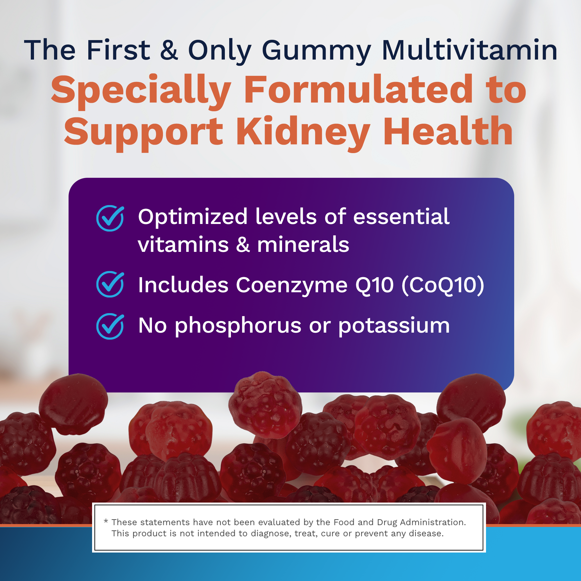 THE FIRST & ONLY GUMMY MULTIVITAMIN SPECIALLY FORMULATED TO SUPPORT KIDNEY HEALTH.
