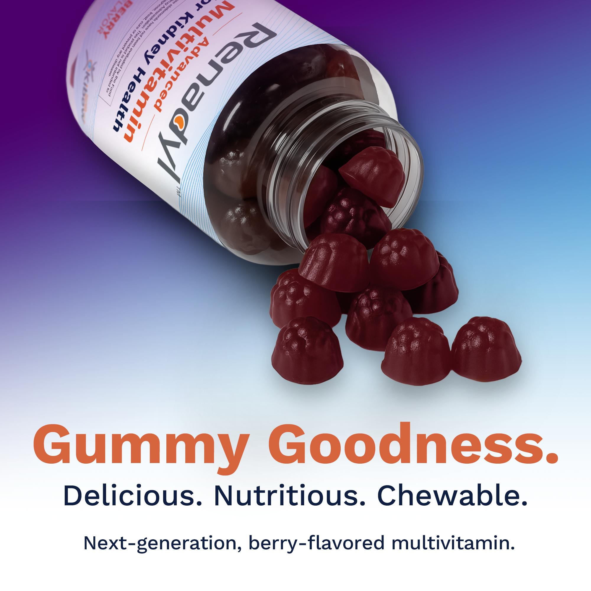 Renadyl Advanced Multivitamin for Kidney Health is a next-generation, great-tasting, chewable gummy multivitamin. -